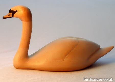 The Mute Swan cob (male) is sculpted from lime tinted with chinese ink stick and finished with wax. It is 13 cm (5") in length and is signed by the artist.