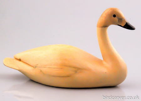 This Bewick's Swan is sculpted from lime tinted with chinese ink stick and finished with wax. It is 12.5 cm (5") in length and is signed by the artist.