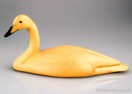 This Whooper Swan is sculpted from lime tinted with chinese ink stick and finished with wax. It is 13 cm (5.25") in length and is signed by the artist.