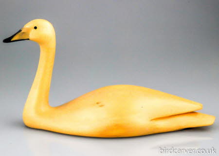 This Whooper Swan is sculpted from lime tinted with chinese ink stick and finished with wax. It is 13.5 cm (5.5") in length and is signed by the artist.